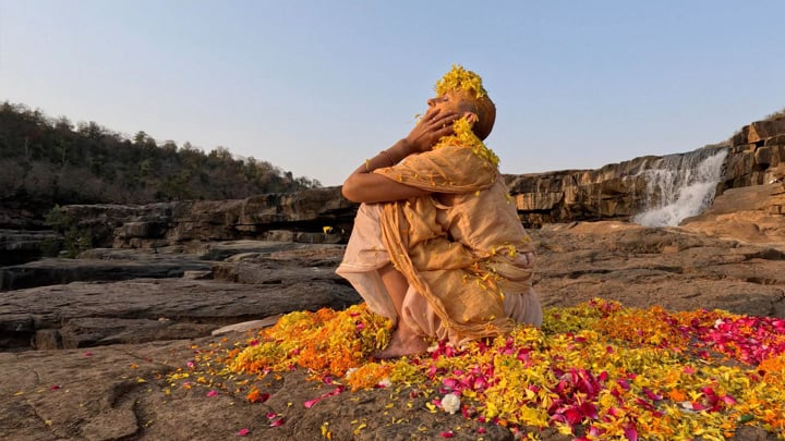 The Mind Rave is an immersive experience created through dance, a live electronic soundscape, public participation and the interaction of various objects in space. The public is compelled to partake through objects that can be activated during the performance: cylindrical head pieces (carefully worn as ‘attention cocoons’), turquoise scented jelly (to be held in a handful) and broken mirrors (used to direct the light onto the performance stage). The experience generates a ritualistic and meditative space where the participants lose themselves in time. The impermanent installation galvanises a space of heightened yet soft haptic sensoriality, which can never be repeated a second time: each experience is unique to the specific iteration.