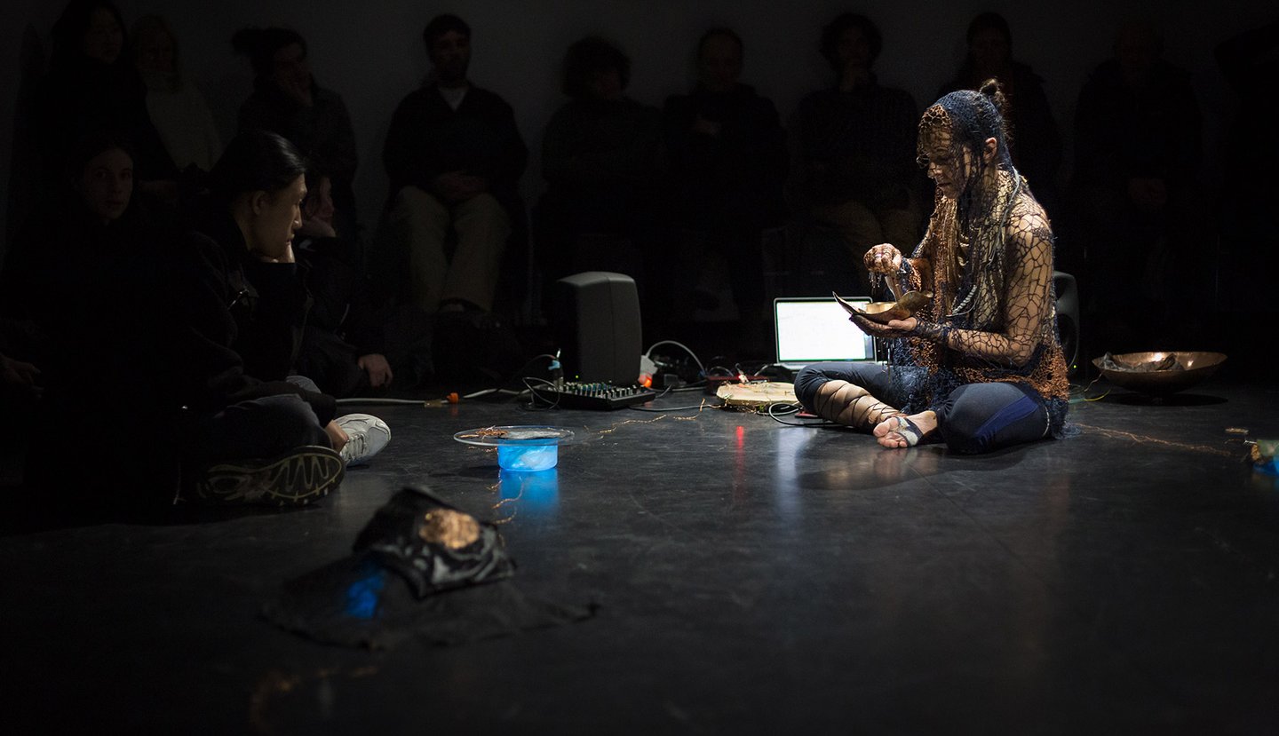 The movements of my practice happen in a Space of the Nameless. My work is less about identity or medium and more about energy as a source of knowing: how it flows through the body, shifts between form and formlessness, and continually shape-shifts over time. I connect dance, sound, visual art, materiality, and electronics to sense, embody, and transmit energetic states.