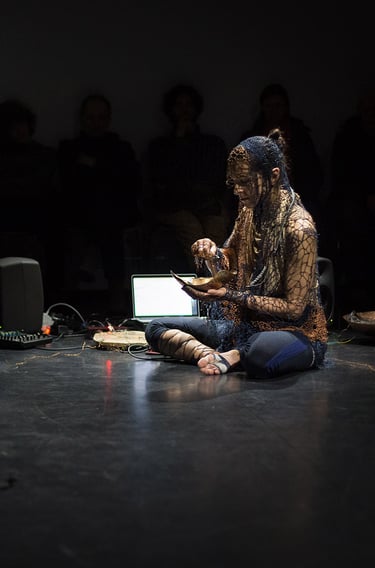 My practice is intuitive and open-ended—a minor gesture (Erin Manning) that happens with or without human audiences, entertaining invisible presences and ancestral forces. It unfolds as a devotional process that begins in the microcosmic orbit of the body, to extend into macrocosmic rhythms, where dreams, intuitions, and emotions fold into the larger field of space and time.