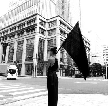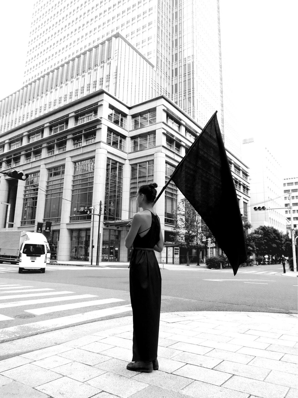 Black Walks is a series of urban walks and films, objects and a black flag that document and historicize each journey. The project began on my birthday in 2012 while I was living in Japan. I was both unsettled and intrigued by the perpetual experience of being labelled a “foreigner” (gaijin). Walking through the city carrying a large black flag emerged from a desire to assert visibility in public space, and to draw attention to those, who like me, don't have a specific national flag, dress, hometown or identity to cling to.