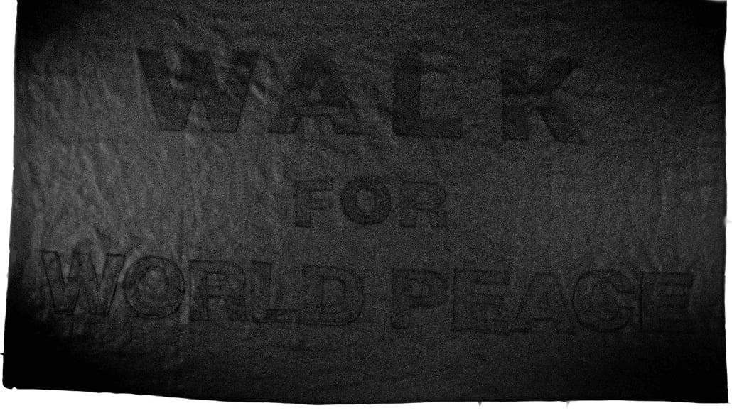 In 2015, Black Walks became part of Field Trip Project Asia, curated by Daisuke Takeya, and continues as a travelling work activated throughout Far East Asia. It consists of a walking score, the Drapeau photo series, and a black flag inscribed with the words Walk for World Peace.