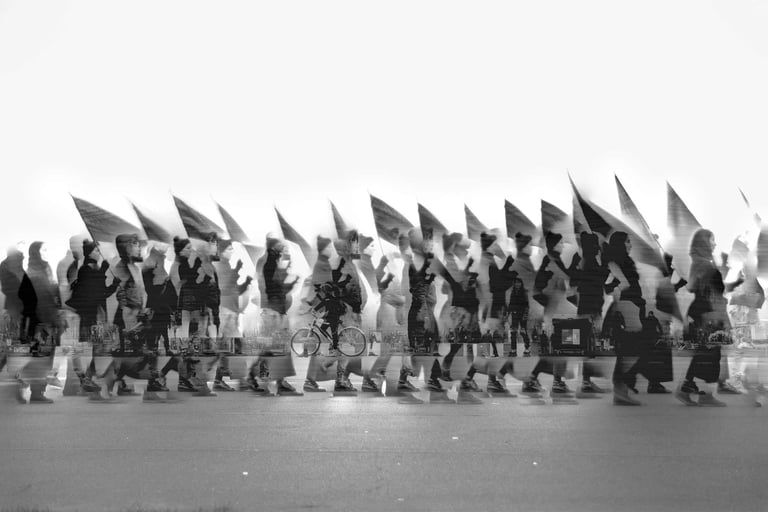 The black flag reimagines Kazimir Malevich’s radical painting Black Square. Like the painting, it embodies a break from representation and challenges fixed notions of identity to go beyond borders to find peace in the simple action of walking. Interpretations of what I'm doing with this black flag vary by context often causing confusion due to the lack of an overt message: in Berlin, it evoked memories of the hidden workings of the Stasi; in Paris, it stirred associations with revolution.
