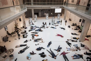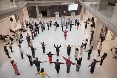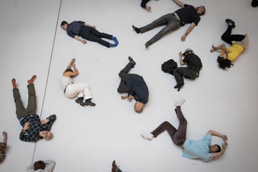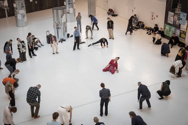 Danced in the Atrium with students of Die Angewandt, University of Applied Arts Vienna on May 16, 2024. Followed by a conversation with Jack Halberstam. Curated by Ruth Anderwald and Leonhard Grond as part of the On Dizziness project and resource.