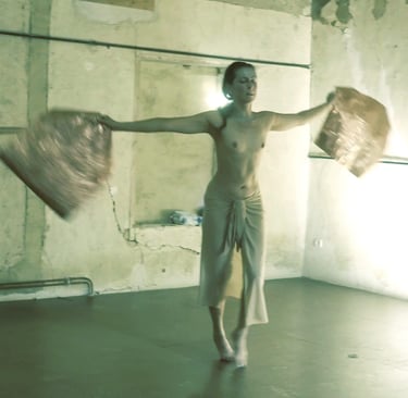 Dressed in Water is a sculptural dance piece that delves into the water element, to imagine how rebirth can follow COLLAPSE. The choreography is a poetic journey beginning with the reclining Buddha reincarnated into a woman’s body. The lesson is to learn to navigate existence once again by listening to the water cycle within the flesh: the movement of holds the secret to the flow of life and death.