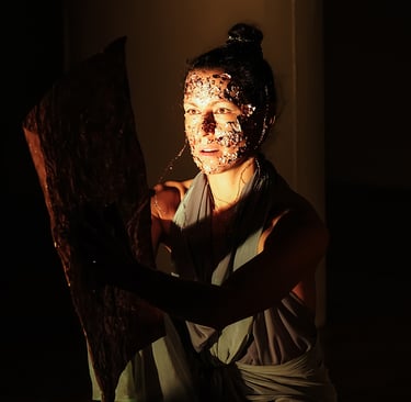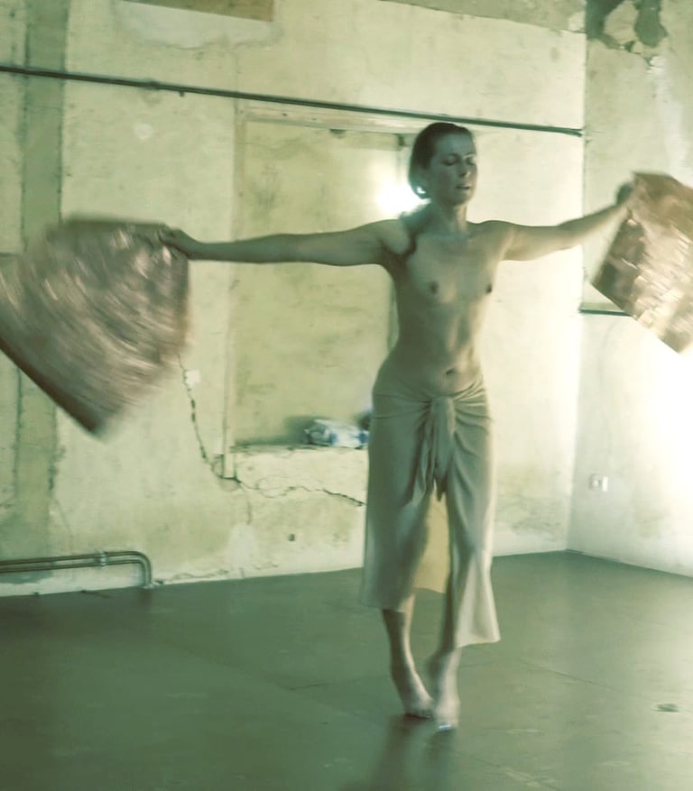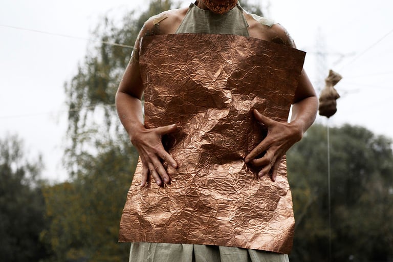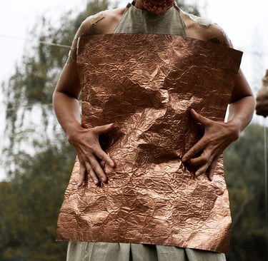 This piece is a tribute to my teacher, Butoh artist and film-maker, Masaki Iwana (d.2020). Masaki's desire was to discover a “device of life itself that dares to live death…” In this work, I dive into his desire. I intensify the materiality of movement by incorporating nonhuman matter to explore this 'device'. Copper represents the cyclical nature of time. At first, the copper sheet is malleable and shapeless, but gradually, through the body's awakening and movement, it changes shape and is gradually smelted into the form of a human body, until it restricts the movement of the body and the dance comes to an end. Only the empty sculpural form remains, inviting the audience to contemplate embodiment and freedom.