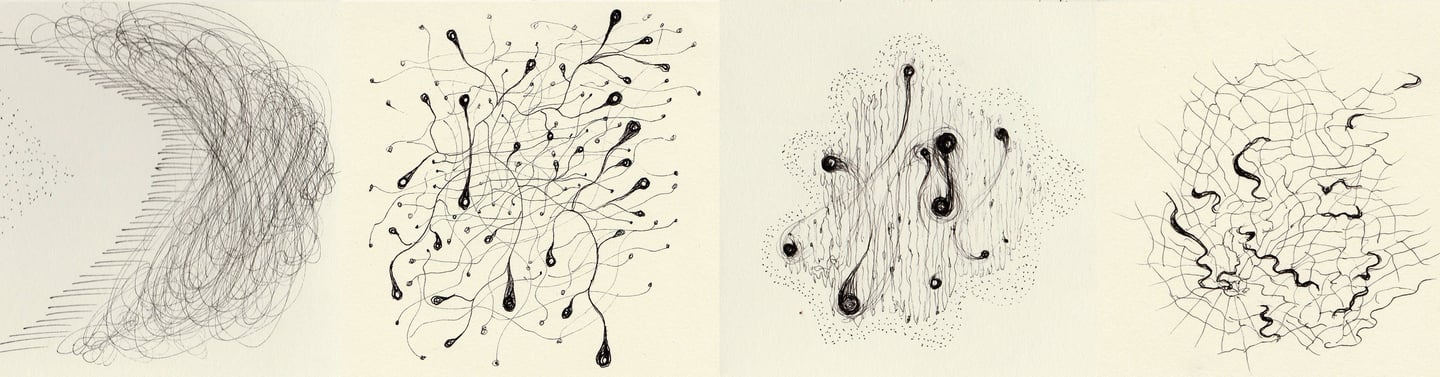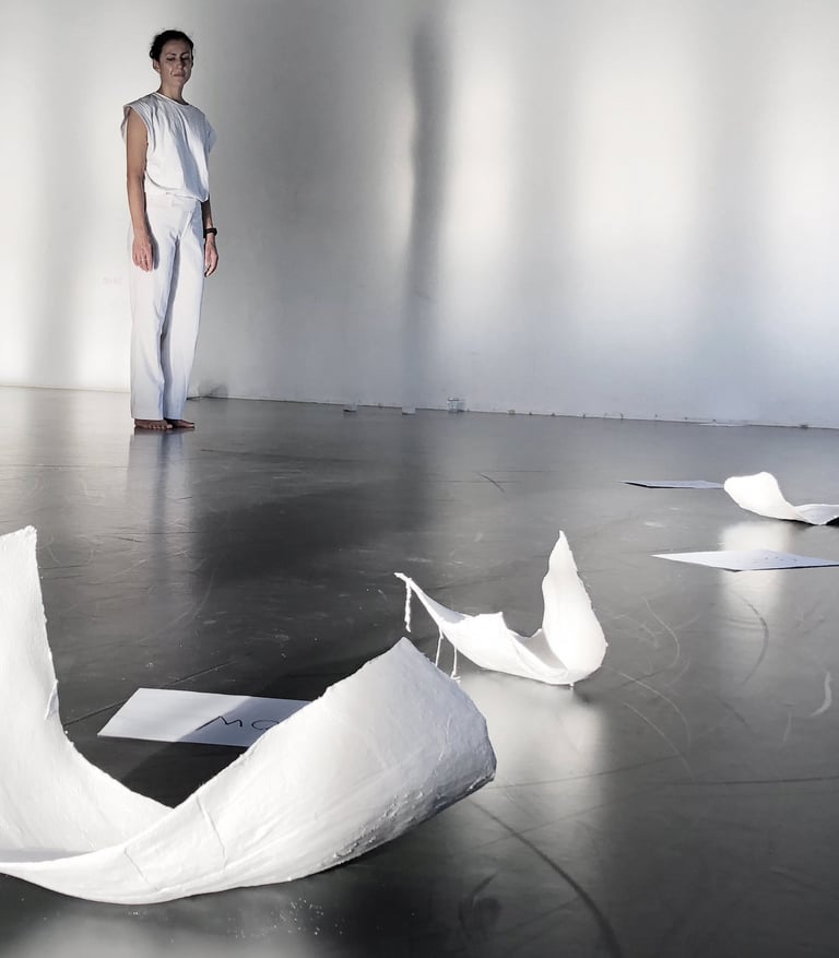 Body, meditation electrocephalogram (EEG), data, pigment pen on paper, choreographic plaster casts, participatory movement, dimensions variable