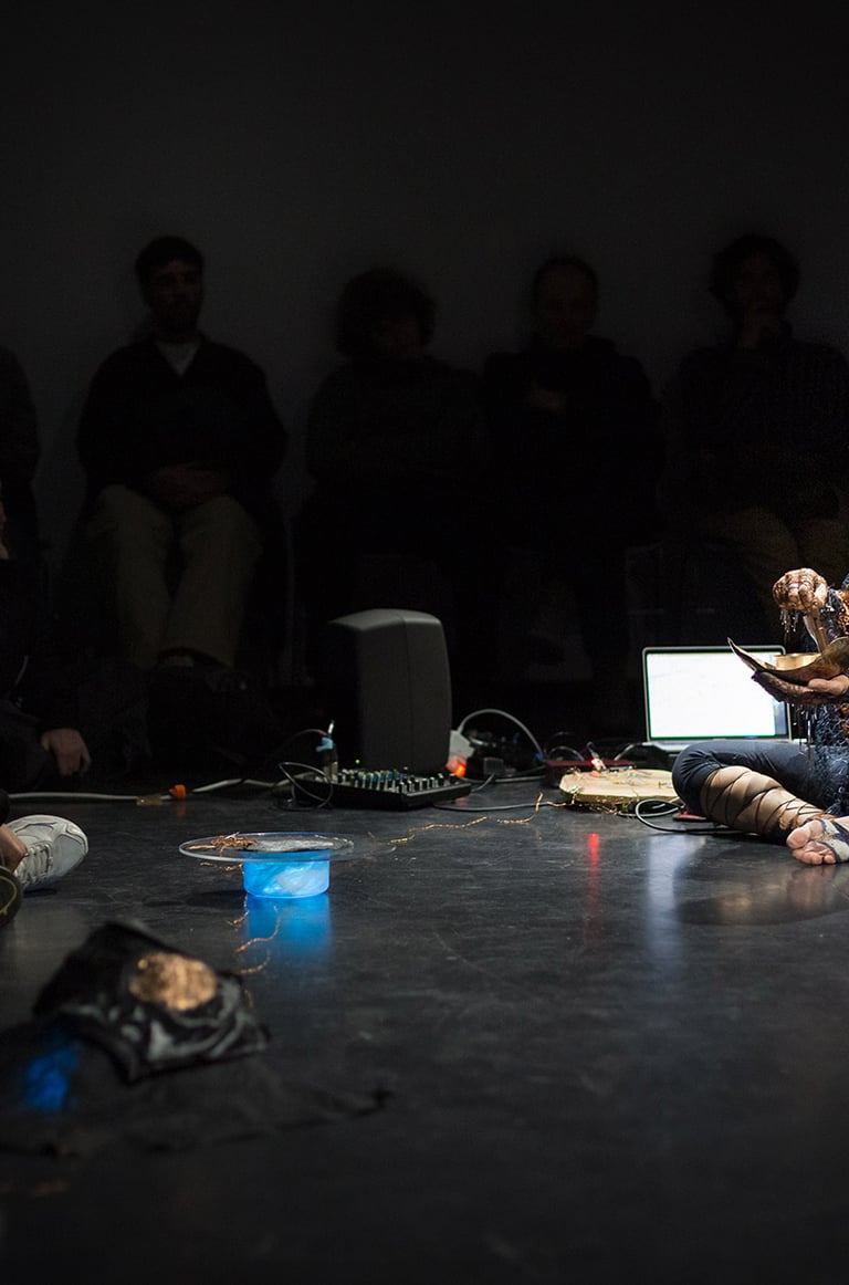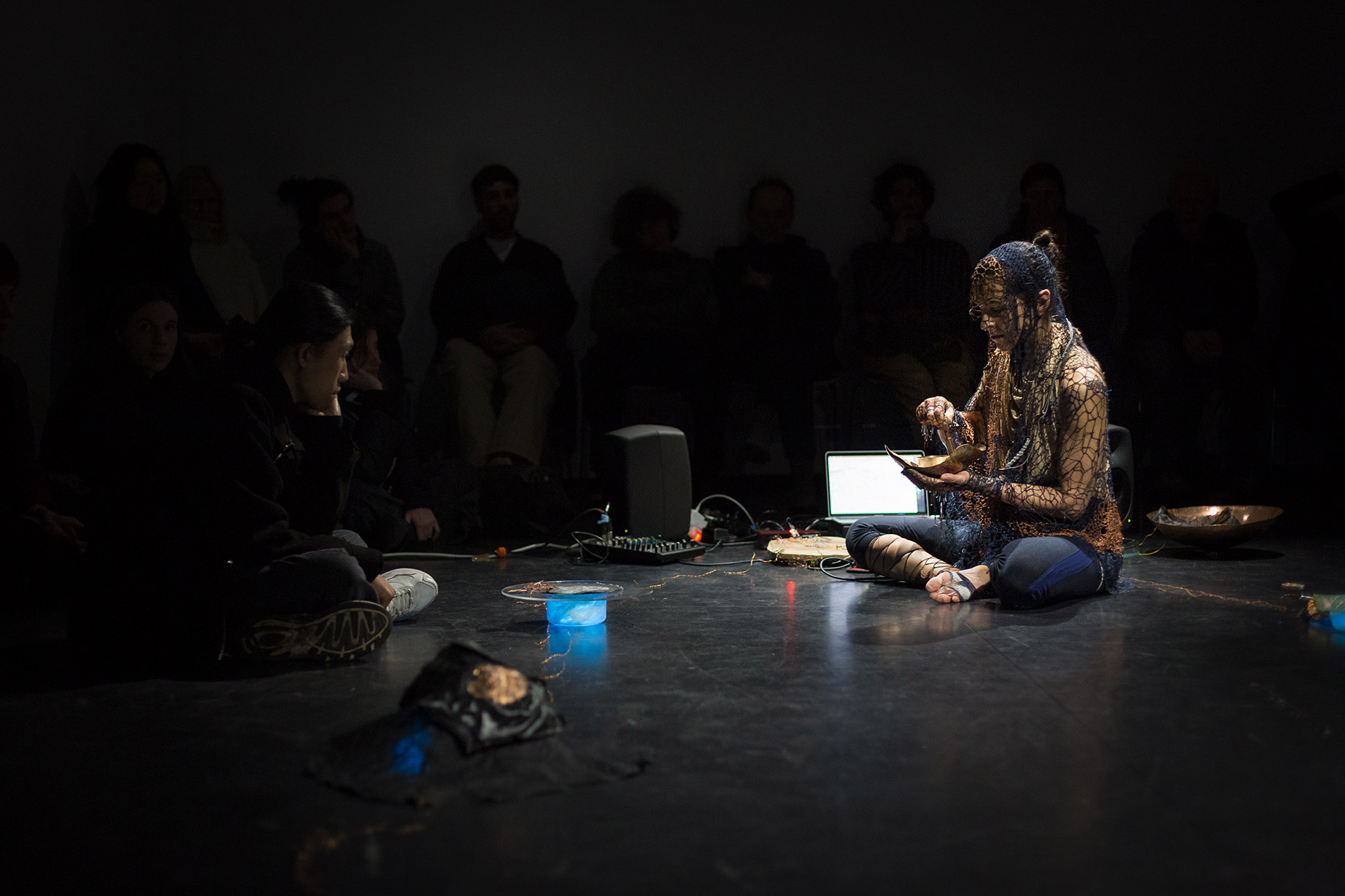 The movements of my practice happen in a Space of the Nameless. My work is less about identity or medium and more about energy as a source of knowing: how it flows through the body, shifts between form and formlessness, and continually shape-shifts over time. I connect dance, sound, visual art, materiality, and electronics to sense, embody, and transmit energetic states.
