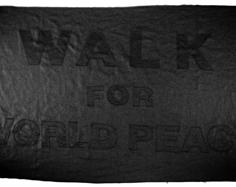 In 2015, Black Walks became part of Field Trip Project Asia, curated by Daisuke Takeya, and continues as a travelling work activated throughout Far East Asia. It consists of a walking score, the Drapeau photo series, and a black flag inscribed with the words Walk for World Peace.
