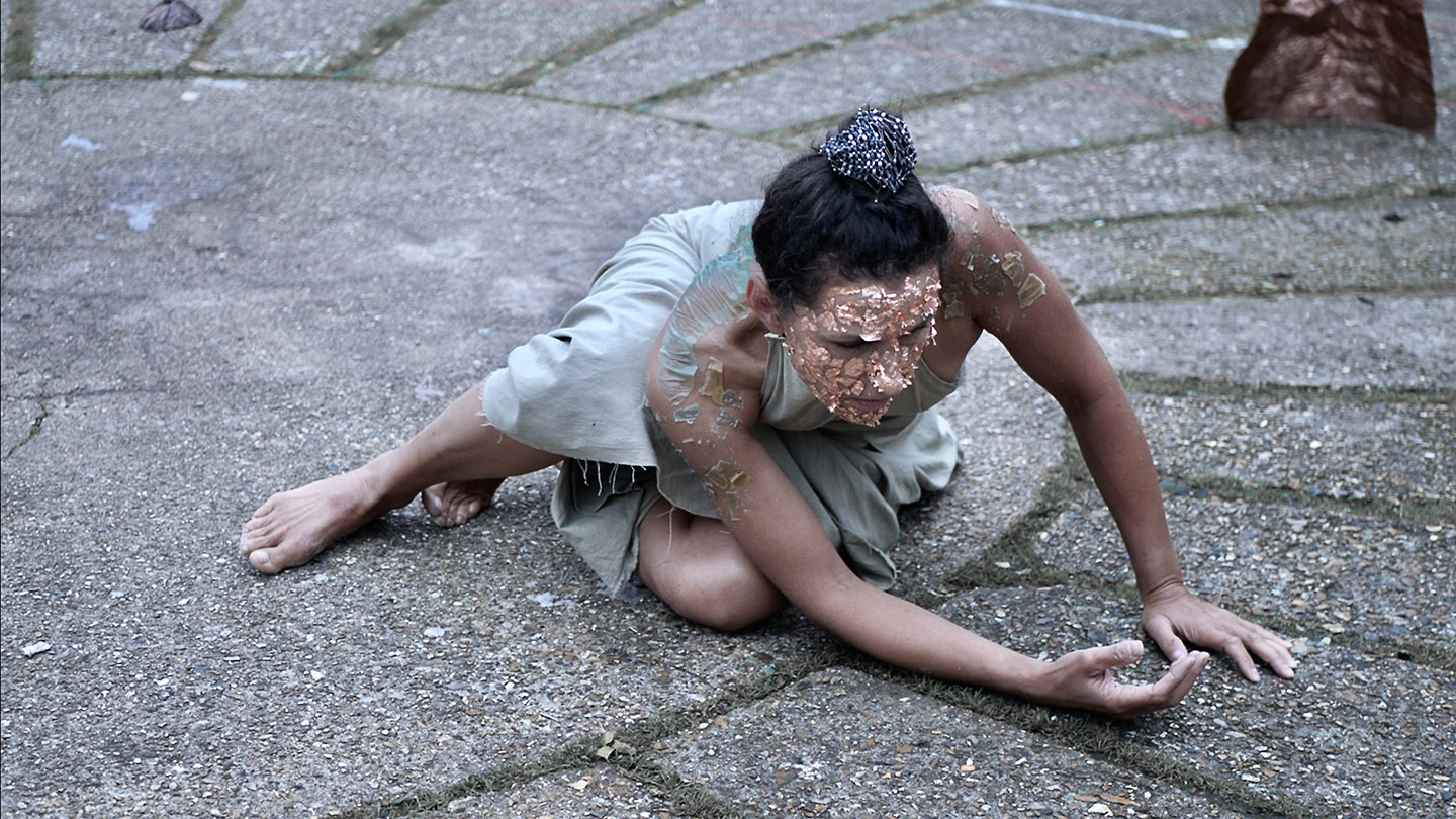 Copper, known for its exceptional conductivity, is integral not only to the transportation of electricity but also in Yogic subtle anatomy, it is associated with the heart centre and the circuitry of life energy. Through the synergy of dance and copper, Dressed in Water manifests the alchemy of spiritual and energetic transduction, connecting elemental forces with the physical dimensions of being. The audience becomes more attuned to the profound vitality of water in their own bodies, reealising that they participate in the living element that assures the future of life on earth.