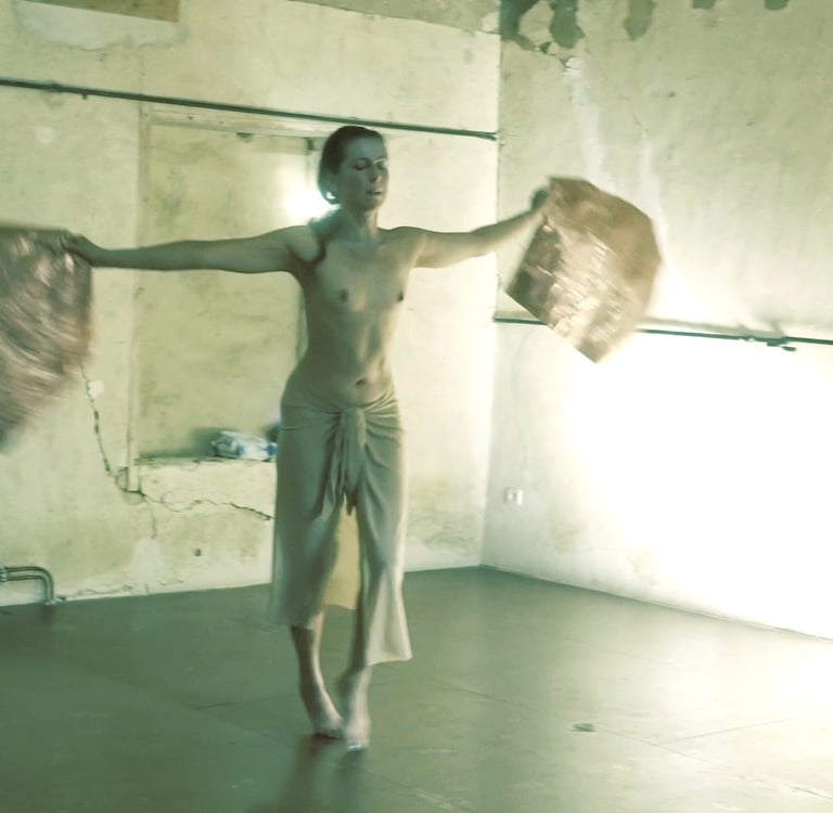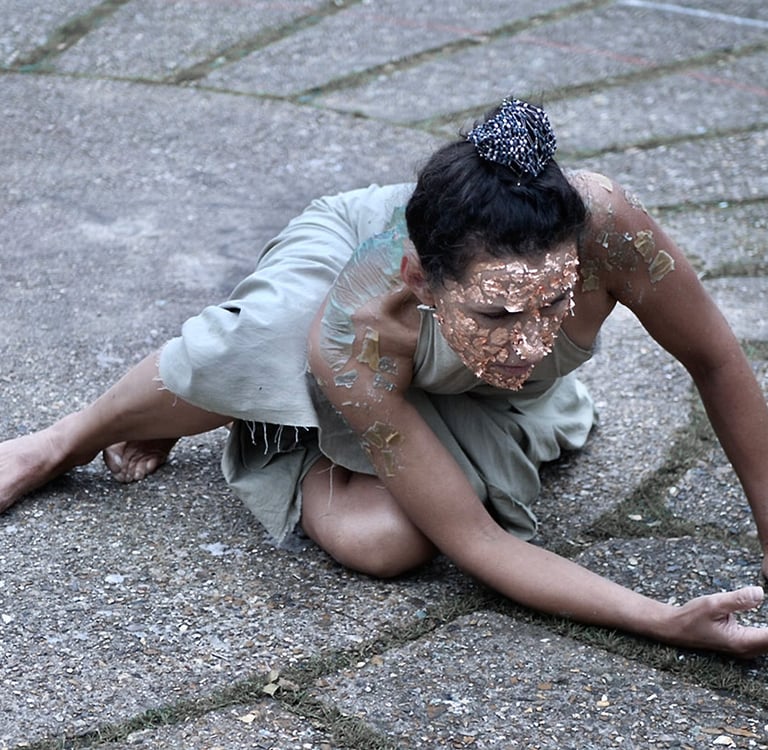 This piece is a tribute to my teacher, Butoh artist and film-maker, Masaki Iwana (d.2020). Masaki's desire was to discover a “device of life itself that dares to live death…” In this work, I dive into his desire. I intensify the materiality of movement by incorporating nonhuman matter to explore this 'device'. Copper represents the cyclical nature of time. At first, the copper sheet is malleable and shapeless, but gradually, through the body's awakening and movement, it changes shape and is gradually smelted into the form of a human body, until it restricts the movement of the body and the dance comes to an end. Only the empty sculpural form remains, inviting the audience to contemplate incarnation, freedom, and impermanence linked to the human condition of 'suffering'.